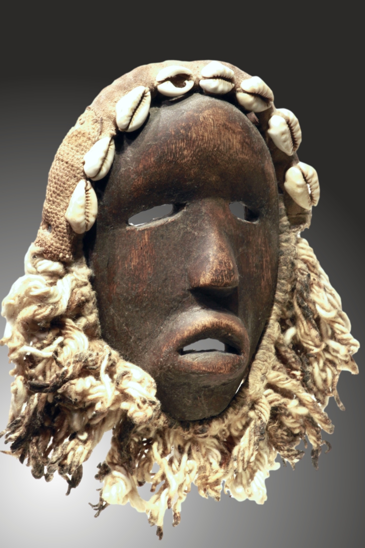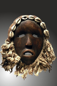 ovales Gesicht, Kordelfransen und Kaurischnecken