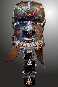 ...Der Bwoom, eine der drei königlichen Masken, nimmt einen bedeutenden Platz im Kulturerbe der Kuba ein, die in der Demokratischen Republik Kongo leben. Diese antike Maske ist eine zentrale Figur bei verschiedenen zeremoniellen Ereignissen und verkörpert verschiedene Eigenschaften. Bei Einweihungen von Jungen symbolisiert der Bwoom den Naturgeist Ngeesh. Als Teil des königlichen Masken-Trios verkörpert sie einen trotzigen Charakter, der sich mit seinem Bruder Woot in einem Machtkampf befindet und um die Kontrolle und den Besitz von Ngaady a Mwaash, seiner Frau und seiner Schwester ringt. Der Bwoom ist nicht nur ein Symbol des Widerstands innerhalb der königlichen Hierachie, sondern wird auch mit dem gewöhnlichen Mann assoziiert, der einen rebellischen Geist gegen die etablierte aristokratische Ordnung widerspiegelt. In seiner Rolle als Aufständischer, der den Thron und sein System herausfordert, zeigt der Bwoom-Maskeralter einen stolzen und aggressiven Tanzstil, der die rebellische Essenz seiner Figur zum Ausdruck bringt. (Dorotheum)