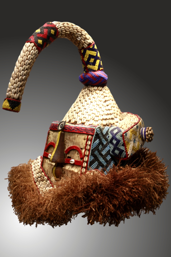 Die königlichen Tänze der Kuba mit ihren farbenprächtigen Maskengestalten waren eines der Highlights auf Hans Himmelhebers Reise durch die damalige Kolonie Belgisch Kongo in den Jahren 1938/39. Die Stülpmaske ngady mwaash wurde ungewöhnlicherweise von einer Frau getanzt, mwaash a mboy hatte ein auf eine Leoparden- oder Elefantenhaut mit Perlen nachgezeichnetes Gesicht und war reich mit Adlerfedern verziert. Ihre Kostüme gleichen einem «Panzer» aus Glasperlen, mit Fellen, Federkrone, perlbesetzten Handschuhen und Schuhen.