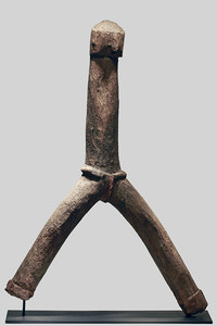 Erst in den 1990er Jahren wurden diese typischen, ‘phallischen’, zu einem umgedrehten ‘Y’ abstrahierten Ahnen-Figuren der Dagari weiteren Kreisen bekannt. Die Dagari sind Verwandte der Lobi, die im Südwesten von Burkina Faso und im Nordwesten von Ghana leben. Ihre signifikanten Ahnen-Skulpturen werden an versteckten Plätzen oder in Schreinen aufgestellt und dürfen nur von ’Eingeweihten’ gesehen werden.Unverkennbar sind die weiblichen und männlichen Attribute.