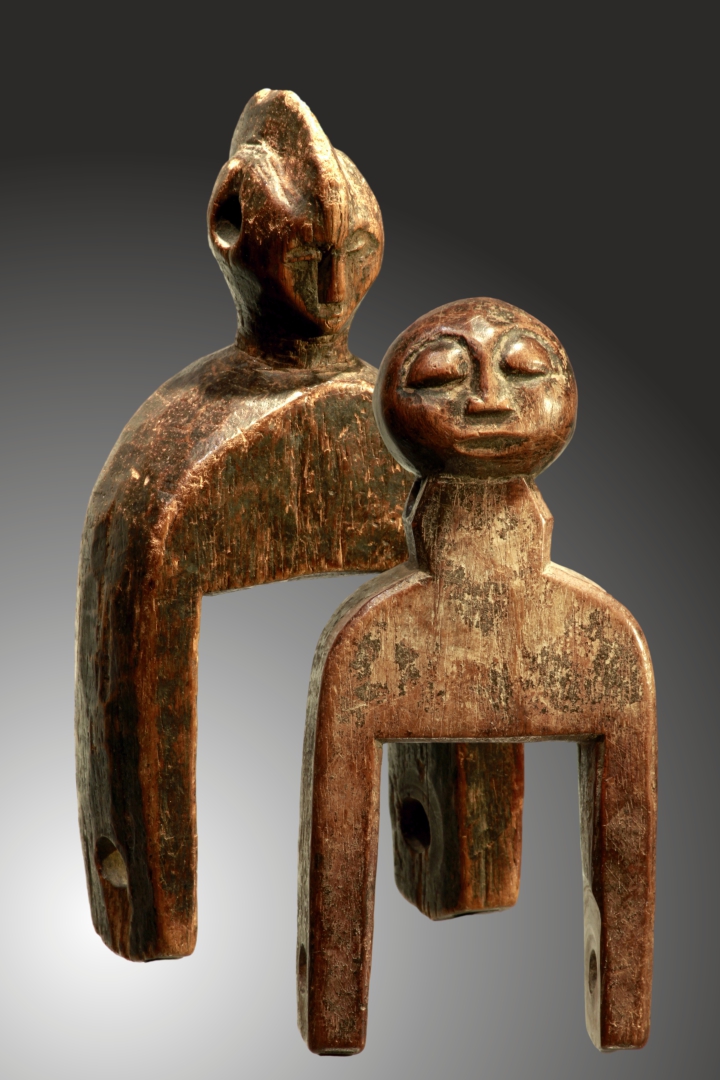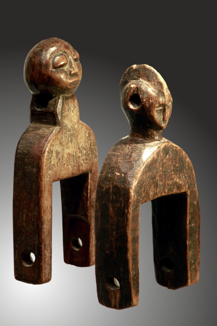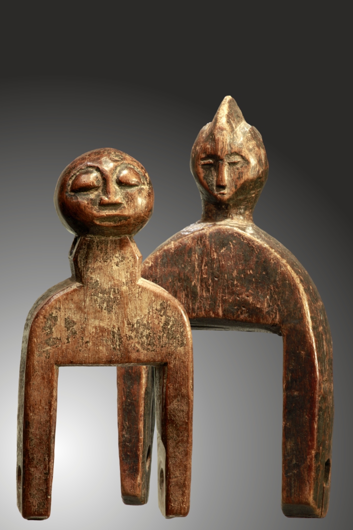 |  | BAULE zwei Webrollenhalter, ca 13,5-16,5cm, ehem Slg Prof.Dr. Peter Maul, 120,-€  BAULE, Elfenbeinküste