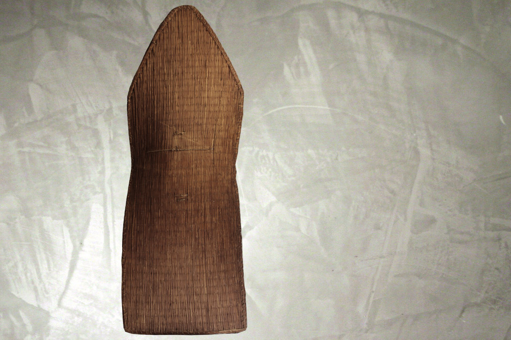 BANA oder MUSGUM Schild aus Ried und Holz Dieses Schild hat gute Gebrauchsspuren und stammt aus einer bekannten Sammlung, Niederlande. Holzgriff und Ried. Herkunft: Nord-Kamerun - Tschad