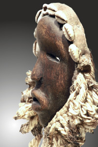 ovales Gesicht, Kordelfransen und Kaurischnecken