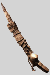 Tierförmige Masken gelten als Hauptkunstform dieses Volkes. Diese große Krokodilmaske wird den Nuna zugeschrieben. Das Krokodil wird mit dem Wassergeist in Verbindung gebracht, dem Garanten für Fruchtbarkeit und Wohlstand. Das Krokodil ist eine Kopfaufsatzmaske und hat die berühmte Schnautze der Tiermaskes dieses Volkes.