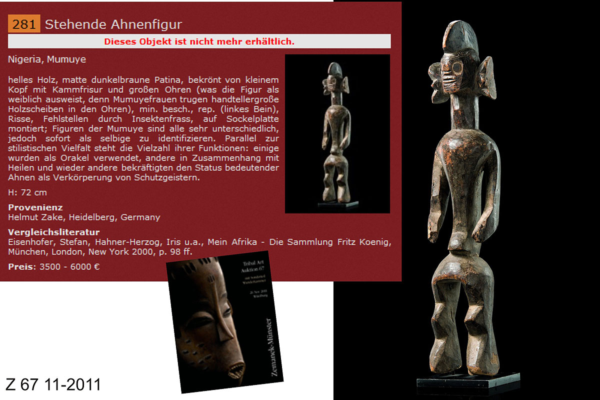 Bis in die 1960er Jahre konnten die MUMUYE, Nigeria noch ihre Unabhängigkeit vor der Christianisierung bewahren. Als die ersten Stück nach Europa kamen war die Nachfrage sofort groß.
